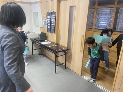 2024年1月26日 09時16分「失礼します。2年1組○○です。「九九名人」チャレンジに来ました。」