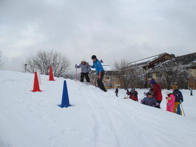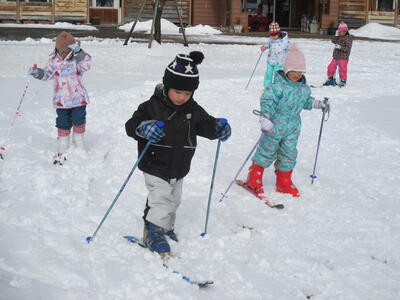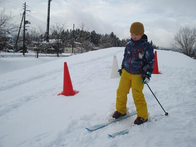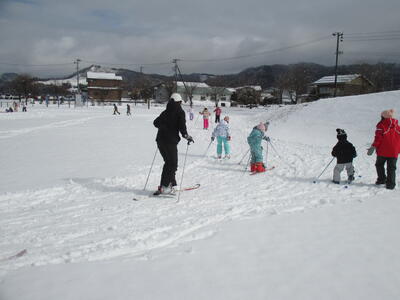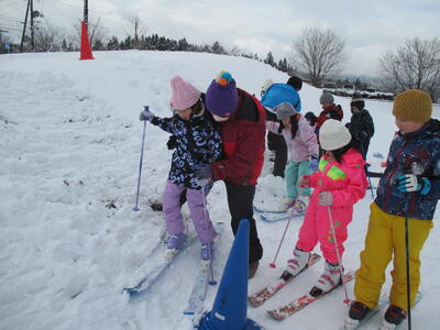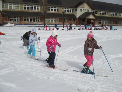2024年2月6日 11時19分明後日、2月8日(木)は、磐梯町のネコママウンテンでスキー教室が行われます。今年は、学校で十分な練習ができず、少し不安な面もありますが、さすが6年生の滑りは安定しています。明後日が楽しみですね。続いて3校時に2年生が、げんき山にカニさん歩きで登り、ハの字で滑りました。斜面をさーっと滑るには、まだまだ練習が必要です。4校時は、1年生が平地滑走の練習をしていました。先生の真似をして、片足でスイー、スイー・・・と。