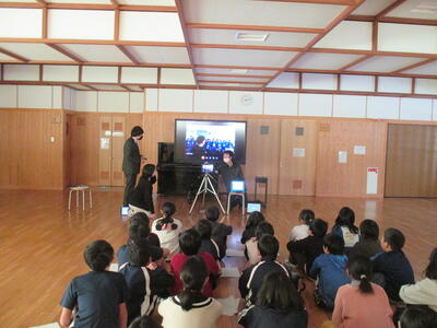 豊間小学校の4年生の反応がとてもすばらしく、発表している方も楽しくなってきたようでした。特に盛り上がったのは、「雪」に関することでした。外の様子をライブ配信した時には、とても驚いていました。