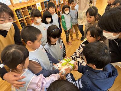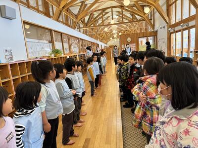 2024年2月7日 17時49分来週、2月14日(水)に、新入生体験入学があります。それに向けて、1年生は只今準備の真っ最中!今日は、こども園へ「招待状」を届けに行きました。招待する1年生も、わくわく、ドキドキしています。