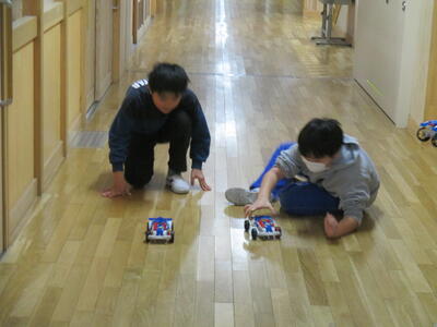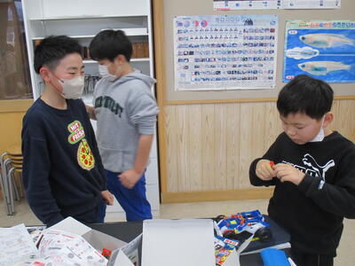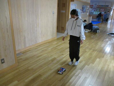 5年生は、理科で「電流が生み出す力」の学習をしています。その力を使って、車を走らせようとしていました。無事に走ったのを確認して歓声をあげていた子、友達と競争をしていた子・・・。「うまく走らなかったとき」がポイント!どうすれば走るようになるのか、自力で解決できたかな?