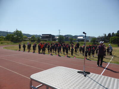2024年5月10日 13時08分2時間目は運動会全体練習です。全校生で開会式とラジオ体操を練習しました。