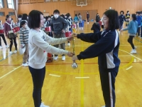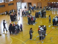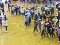 卒業関係の話題ばかりになりますが、今日2、3校時、中学校体育館で「6年生を送る会」が行われました。 5年生は実行委員会を結成し、運営や準備に頑張ってきました。 各学年もそれぞれの役割に従ってダンスや旗、贈り物などを準備しました。 入場では、4年生が作ったお祝いの飾りに囲まれた中、2年生が一緒にエスコートし、それを1年生がかわいらしいダンスで盛り上げました。 途中のゲームでは写真のように縦割り班で5年生が趣向を凝らした企画を楽しみました。 一つ一つを書いていくととても長くなりますので、詳しくはお子様にお聞きください。(特に、湯田先生が活躍したシーンをぜひ聞いてみてください。) 休憩を挟んで鼓笛移杖式を行った後、3年生からのプレゼントを受け取り、6年生は感謝の言葉と演奏を返してくれました。 そして、1~5年生全員のアーチをくぐっての退場となり、6年生の代わりを務めリーダーとなっていく5年生のデビュー戦は、大きな成果を収めて閉幕しました。