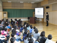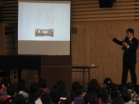 忘れてはならない日、3.11。 朝の集会において、校長が3.11の講話をしました。 まず初めに5年前大震災でお亡くなりになった方々のご冥福を祈り黙祷を捧げました。 そして、パワーポイントというパソコンソフトを使って、画像を見せながら、いつ、何が起こり、どんな状況になり、その後どうなり、今現在どうなのか、そして3.11の「意味」について話をしました。 低学年は当時2~3歳くらいで、記憶も実感も薄いでしょう。 やがて、時間の経過と共に多くの記憶が無くなったり、3.11を経験していない世代が入学してくることになります。 ですから今年はあえて、画像を使いました。 思い出したくないという人もいるかもしれません。 しかし、この日は必ず語り継がれて行かなければならないと思います。 忘れてはならない日なのです。 各家庭でも、自然への畏敬や生命の尊さ、絆の大切さ、一生懸命生きること、など子どもに語りかけてください。 (今年もケーブルTVの取材がありましたので、話の中身はそちらをご覧ください。)