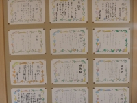 さて、登校日は残り7日となり、校内は「卒業」と「1年の総まとめ」ムード一色となっています。 6年1組の教室入り口の掲示に、写真のような家族への感謝状が張ってあることに気づきました。 担任の湯田先生が卒業を前にして書かせたものだと思いますが、気持ちを文字にして表すことで、心情がしみこむように深まって行っただろうと想像されます。