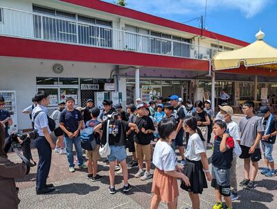 2024年6月27日 14時30分いよいよ修学旅行最後の活動です。班毎に分かれて相談しています。ジェットコースターが人気です。時間を確認しながら楽しんでね。