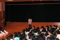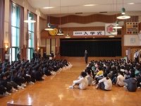 2016年4月7日 17時09分新学期が始まって2日目、10時半過ぎから小学生と中学生の対面式が行われました。 この行事は、新校舎へ移転した昨年から始まったもので、施設一体型小中連携を進めるため、顔合わせをして共に成長を決意する儀式です。 中学生が整列して待つなか、小学生が向かい合った場所に入場し、中学生の運営で進行されました。 さすが中学生の生徒会役員といった活躍でした。 小・中学校長の話の後、小学校を代表して6年生のハルナさんが中学生によろしくお願いしますとあいさつをしました。 内容も的確で、所作等もりっぱでした。 これからも中学生の支援を受けつつ、模範を示す中学生の姿に近づけるよう成長していくことを誓いました。