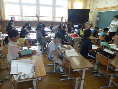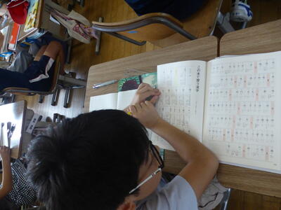 4年生は国語の時間です。始めに漢字練習を行っています。丁寧に書くことや書き順に注意しながら、繰り返し練習して覚えていきましょう。