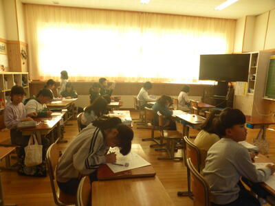 3年生は算数の復習を頑張っています。問題を解いた後は、オープンスペースで答え合わせです。わからないところがあれば、先生方や友達に質問していました。