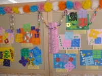 2016年6月3日 18時00分最近いろいろな学年で話題が多く、1年生のことを載せられませんでした。 今日は、1年生の図工科の作品について紹介します。 「チョキ チョキ かざり」という題材名で、はさみの使い方に慣れ、紙の切り方を工夫して思いにあった形を切り取りました。 生活に根ざした技能を育てながら作品を完成させましたが、表し方の工夫やおもしろさを感じます。 色合いや形、切り方、張り方(まとめ方)、それぞれ個性たっぷりです。
