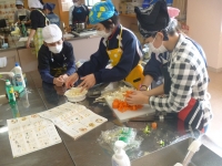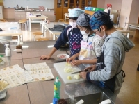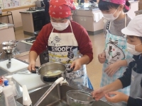 今日の2校時目、6年1組の児童が家庭科の学習で「調理実習」を行いました。 メニューは「野菜のベーコン巻き」か「ジャーマンポテト」ということでした。 中学校で打ち合わせがあり、そこに向かう途中で立ち寄ったため、児童は野菜を切ったり、お湯に野菜を入れて煮込もうと、それぞれの班で奮闘中のご様子。 野菜を切る手つきやお膳立ての準備の様子を見ていると、お手伝いで手慣れているなと感じる子もいました。 「男子、厨房に・・・」などと言うのは昔の話です。 今や独り立ちするには、自分の食生活は自分で責任を負わなければなりません(私は単身赴任が何度もあったので大丈夫です)。 担任の久保田先生曰く、「とってもおいしかったですよ。」 いつか食する機会があれば・・・。