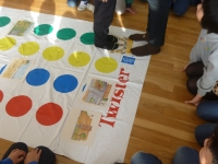今日の1校時目、ALTのウォーレン先生がお出でになり、3年生が国際理解学習として英語の活動を楽しみました。 色のついた丸印に建物の絵を置き、英語で指示しながら目的地へ向かわせる活動でした。 ゴー ストレイト(Go straight.真っ直ぐ進んで。)とか、ターン ライト<レフト>(Turn right<left>.右に<左に>曲がって)と英語で指示し、パートナーが聞こえてきた英語に反応して動いて目的地を目指していました。 これは、5、6年生や中学校で学ぶ「道案内」の最も基礎の部分です。 楽しく英語に親しみ、英語を学ぶ素地を少しずつ身につけていってほしいと思います。