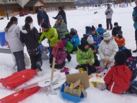 2日目は、西会津小校庭に場所を移し、雪上運動会です。 そりリレーやムカデ競走、ミカン拾い、そり遊び、雪合戦など、保護者の方も交えて十分に雪遊びを楽しむことができたと思います。 そして、ロータスインに戻って昼食を食べるともうお別れです。 2日間があっという間に過ぎてしまいました。