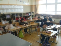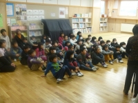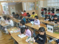 ※ 実は、今日8:15から「読み聞かせ」もありました。 プレイホールで、ボランティアの方に、2年生がお話を聞かせてもらいました。 大型の本を使って、毎月2回程度行ってもらっています。 いつも本当にありがとうございます。