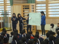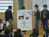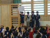 環境委員が朝の集会で「環境問題」や「エコ活動」の研究発表を行いました。 昨年度と今年度の学校水道水・電気量の比較をして節水や節電を具体的に呼び掛けました。 また、エコクイズを出したグループもありました。 水道水を出しっ放しにすると、1分間でペットボトル12本分の水が無駄になるそうです。 他にもへェ~と驚かされた数字のクイズがありました。 さらに、給食の牛乳パックの回収について、データの数字を分かりやすく具体化して教えてくれるグループもありました。 子どもたちがどれくらい覚えているか聞いてみてください。 環境委員会の皆さん、大変立派でした。 おご苦労様!