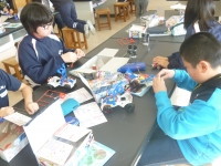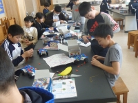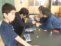 理科室をのぞいてみると、思わず図工の製作をやっているのかなと思ってしまいました。 今時の「電気」の学習は昔とは違うのですね。 電流の流れや+、ー、電磁石の性質などを写真のような「動くおもちゃ(?)」を実際に作り、動かして学ぶようです。 理論だけでなく、実際に体験して分かっていくことで、ただ知っているというレベルから、生活にまで生かせる知識(知恵)となっていくことが、これから必要とされる学びですね。