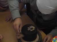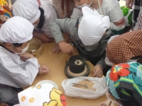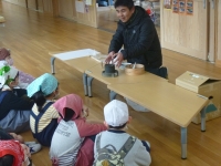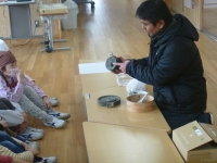 今日の講師は、橋谷田淳さん。 豆を挽く大きな石臼は危険でもあり、運搬も大変なのでお茶っ葉用のかわいい石臼を準備してくださいました。 小さくても原理は同じです。 3年生は興味深げに石臼を回し、きな粉が石の隙間から出てくるのをじっと見ていました。 途中でその場を離れましたが、きっとおいしいお団子を食べて大満足だったことでしょう。 橋谷田さん、ありがとうございました。