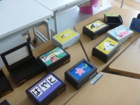 ※ 6学年ラウンジに、最後の図工作品と思われる、オルゴールやラック、宝石箱?が飾られていました。 卒業記念製作だと思います。 大切に使ってほしいですね。