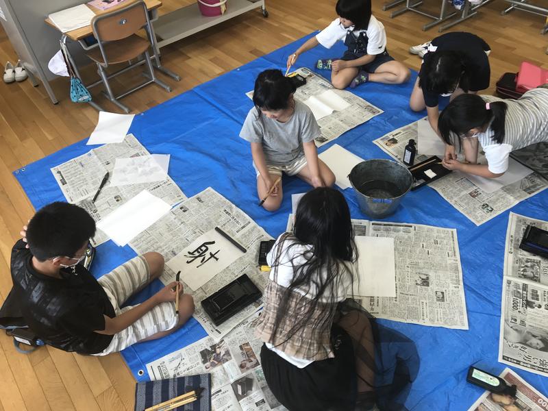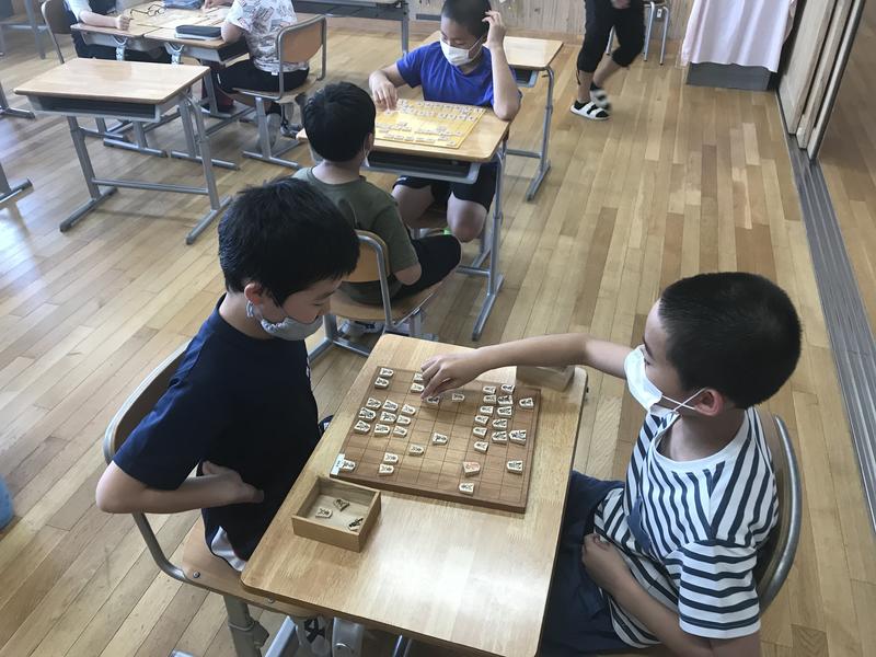 子どもたちへのアンケートを基に、7つのクラブ(バドミントン・卓球、科学、イラスト・工作・切り絵、ボードゲーム、カードゲーム、音楽・ダンス、筆)ができました。4年生以上の児童がクラブ活動を行います。今日は2回目のクラブ活動の日でした。異年齢の児童同士で協力し、共通の興味・関心を追求していました。