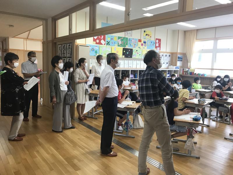 2020年7月15日 16時35分本日の5校時、学校運営協議会委員の方に全クラスの授業を参観していただきました。参観は、視点1を①学校運営ビジョンを基に、授業の様子・子どもたちの様子・学校全体の雰囲気、②今年度の校内研究テーマ「ICTの効果的な活用」にしました。さらに、視点2を各担任から見て頂きたい点としました。参観後の懇談や顔合わせ会では、委員の方から貴重なご意見をたくさんいただくことができました。ありがとうございました。今回のご意見を今後の学校運営に生かし、「地域に根ざした特色ある学校づくり」を進めて参ります。