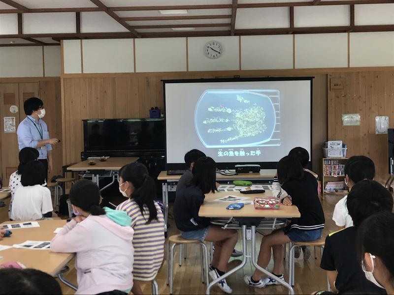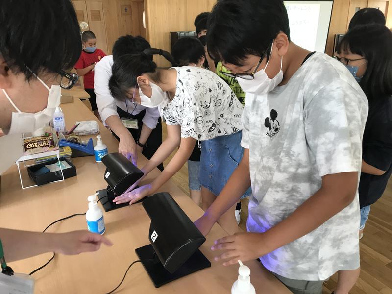 2020年7月17日 12時53分会津保健所 食品衛生チームの方に来ていただき、6年生対象の「食の安全教室」が行われました。内容は、①食中毒について、②正しい手洗いについて(手洗い実験)の2点でした。手洗い実験では、専用のローションを手につけ、専用ライトで手の汚れを確認しました。その後、石けんを使って念入りに手洗いを行い、再度専用ライトで汚れがしっかり落ちているか確認しました。今後に十分生かせる学習でした。