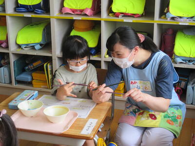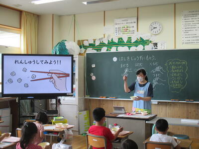 2022年7月5日 16時34分今日は、西会津町学校給食センター栄養教諭の山口先生に、「上手なはしの持ち方を教えていただきました。