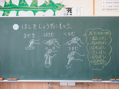 今日は、西会津町学校給食センター栄養教諭の山口先生に、「上手なはしの持ち方を教えていただきました。