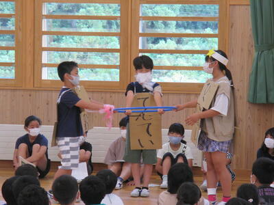 初めに、「七夕について」集会委員会が劇を交えながらお話ししました。