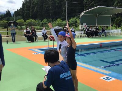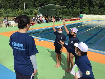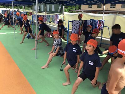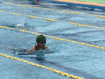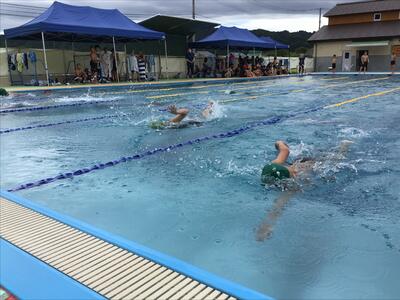 2022年7月14日 17時54分今週は雨マークだったのですが、本日は晴れ時々くもり。風があったので、プールに入った子供たちの中には、「さむーい」と話す子もいましたが、保護者の方もたくさんお見えになられ、熱気に包まれた水泳記録会になりました。