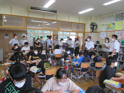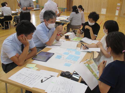 2022年9月9日 18時30分西会津小・中では、年に数回お互いの学校の授業を参観し、授業について、子どもの様子について、研修を深めています。本日は、6年生の社会科の授業を中学校の先生方にも参観していただき放課後に合同研修会を行いました。