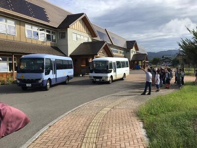 会津坂下町にある「会津自然の家」へと元気に出発しました。