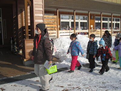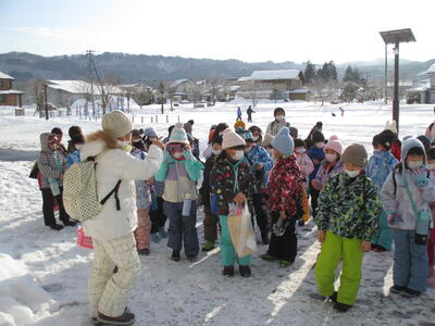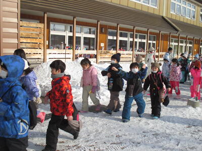 2023年2月1日 09時20分雪遊びが大好きな子どもたち。今日は、会津自然の家で1日中「ゆきあそび」を満喫します。