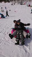 また、スノーチューブも途中から登場し、こちらは先生と一緒にくるくると回りながら滑り降りました。もう、みんな大興奮のハイテンションでした。