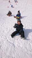 会津自然の家での「ゆきんこまつり」午前中は、ソリのりでした。
