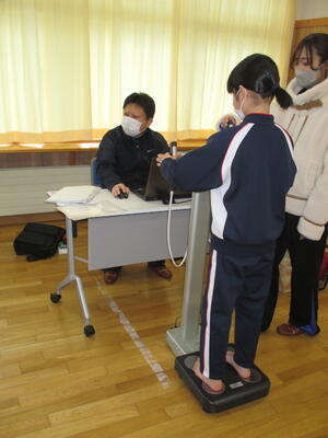 2023年2月9日 15時24分学校では、各学期の始めに「身長」と「体重」を計測しています。小学校の時期の子どもたちは、成長ととともに、身長が伸び、体重も増えています。今回行った「体組成計測」では、文字通り、体がどのように成り立っているのかが分かります。筋肉量や脂肪量、体水分量など・・・。今回使用した機械では、体幹部、左右腕、左右脚など、それぞれの部位の筋肉量や脂肪量も測定することができます。高額な機械のため、かんたんに購入することはできず、会津大学短期大学部の渡部先生のご協力をいただいて、今年度は2回測定をしました。「筋肉量が増えたね」「冬だから、なかなか体を動かす機会がないのかな?(=脂肪量が増えていますよ)」など、自分の体の中を知る時間となりました。