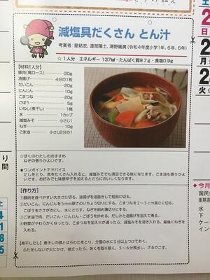 食育の日献立 ~減塩具だくさんとん汁