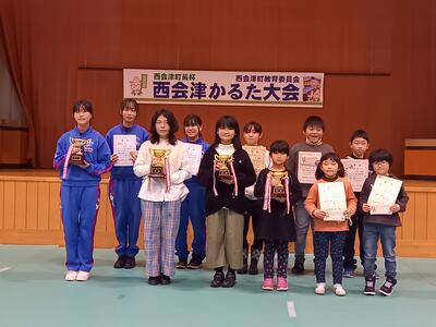 2023年2月18日 10時42分2月18日(土)、野沢体育館にて「第5回町長杯西会津かるた大会」が開催され、西会津小学校からは、低学年の部に7名、中学年の部に3名、高学年の部に2名参加しました。