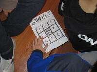 ④4年生は、学校クイズ。正解すると1ブロック前へ。不正解だと後退・・・。なかなか進めません!