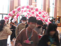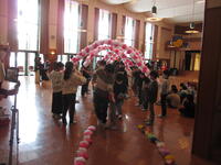 ①1年生は、思い出ビンゴ。ビンゴになったら、すてきなハートの首飾りがもらえます。