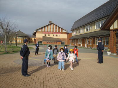 2023年4月15日 13時44分4月14日(金)の朝、小学校昇降口前で、あいさつ運動が行われました。久しぶりにお会いしたこども園の園長先生を見かけると駆け寄り、元気よく「おはようございます」とあいさつしていました。