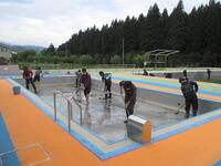 今日は、リサイクル活動に引き続き、奉仕作業が行われました。20日(土)に行われる運動会に向けて中学校グラウンド周辺を中心に「草刈り」、来月のプール開きに向けて「プール清掃」、校舎内の「窓拭きとトイレ清掃」、その他の環境整備としてビオトープ付近の「机・ベンチの設置」の作業を行いました。お忙しいところご協力いただきました保護者の皆様、ありがとうございました。