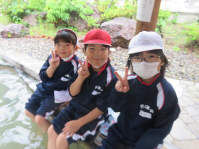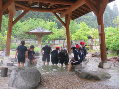ほっとin柳津で、昔の道具を見たり、足湯に入ったりしました。温泉、いい気持ち♪