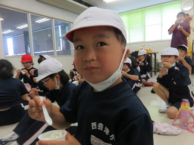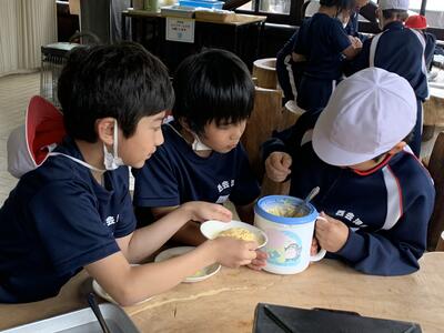 雨だったので、ばんげひがし公園には行かず、学校でお弁当を食べました。