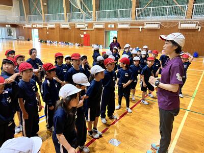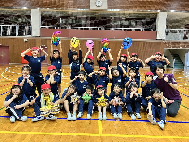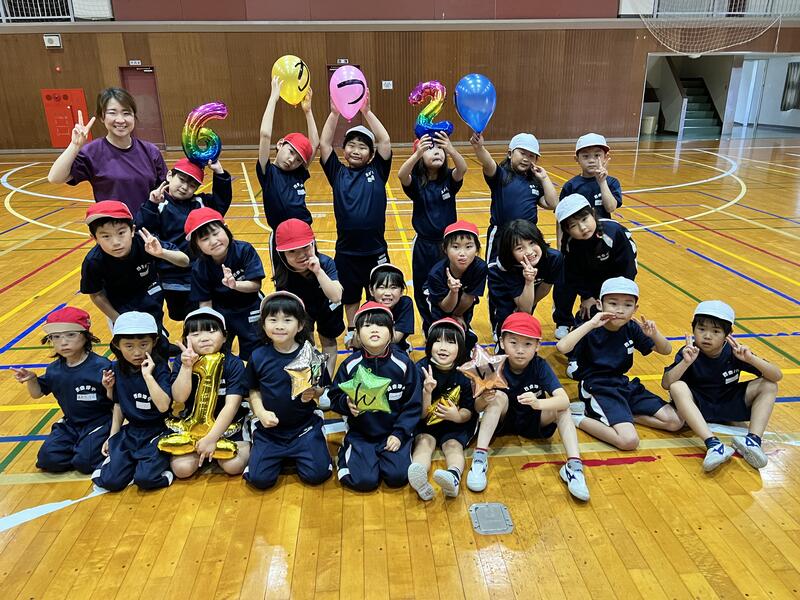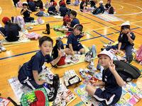 小学校の多目的ホールとは比べ物にならないくらい広い体育館で、たくさん遊びました。お弁当タイムも楽しそうですね!