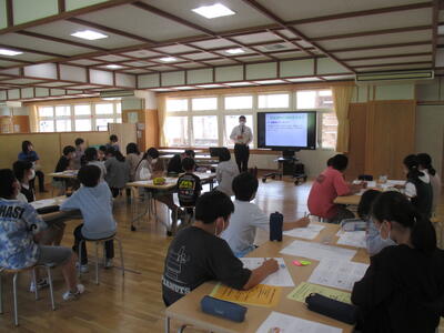 2023年6月6日 14時13分西会津町は、福島県59市町村の中で高齢化率が6番目に高いそうです。元気な高齢者もたくさんいらっしゃいます。もし、身のまわりに「高齢者」や「認知症」の人がいたら?・・・という授業でした。家族構成などは、子どもによって様々です。「自分にできることを考えよう」って言われても・・・。介護福祉課の方が「みなさんは小学生だから、自分が何とかしゃなくちゃって考えなくていいんだよ。大人を頼っていいんだよ」とお話ししてくださったので、安心したようでした。