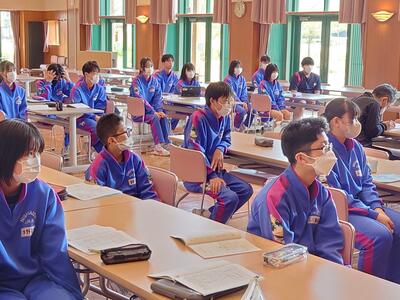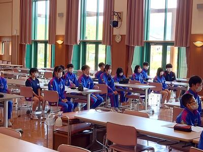 2024年4月22日 18時15分明日からの3年生が修学旅行に出発します。その結団式がありました。各係の代表生徒の話や、実行委員長の話があり、修学旅行への気持ちをさらに高めることができました。明日からの修学旅行、楽しく充実したものになるように、そして安全に行ってきます。
