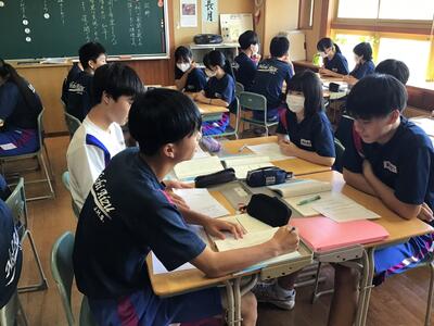 2024年9月17日 19時15分3年生国語の授業の様子です。魯迅の小説「故郷」を題材に、根拠をもとに説明し合う授業でした。