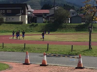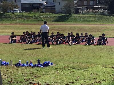 2024年10月17日 12時10分保健体育の授業では、長距離走が行われています。10月24日に校内駅伝大会も予定されており、その練習にもなっています。走り終わった生徒が、クラスメイトの走りに「ガンバ」などの声をかけて励ましていました。写真は2年生の様子です。