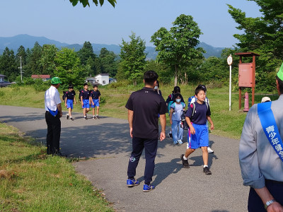 2025年6月20日 11時16分町の青少年健全育成に関わる方々による、朝のあいさつ運動がありました。小中学生ともお世話になっている地域の方々にしっかりあいさつができました。