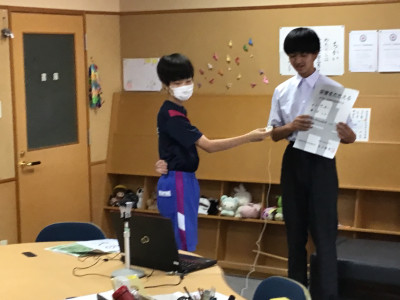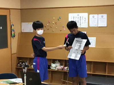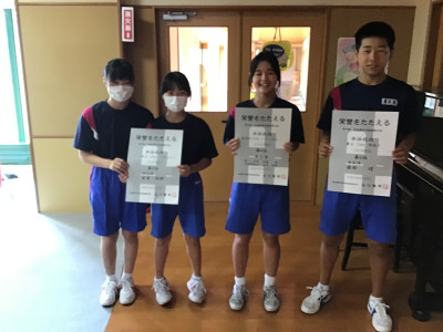 2025年6月23日 12時37分今日のオンライン朝会で、中体連総合大会や中体連水泳大会、協会主催陸上大会の表彰がありました。